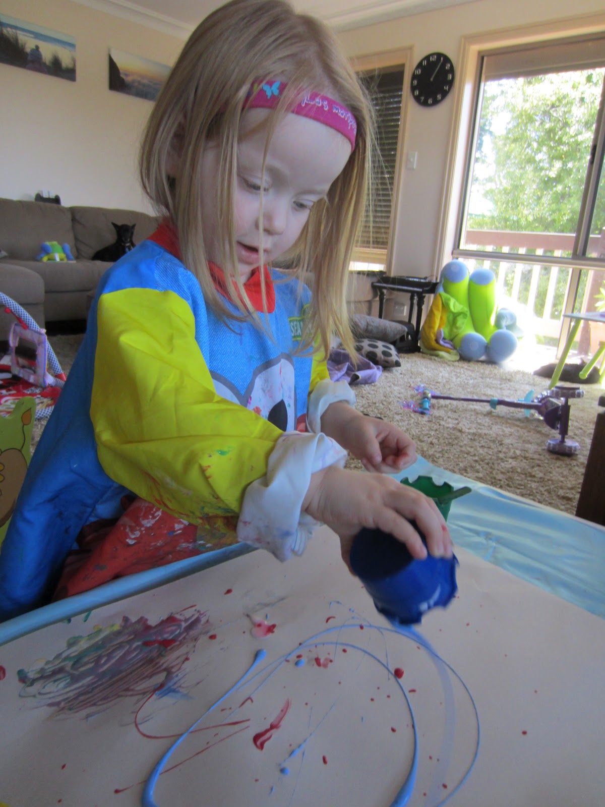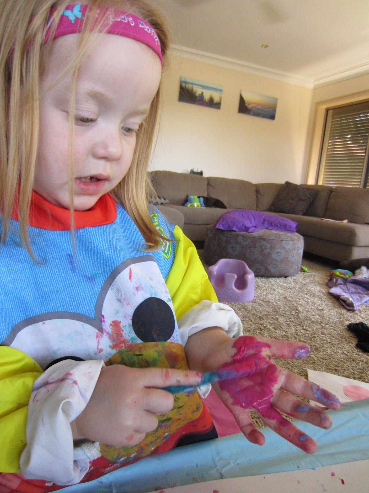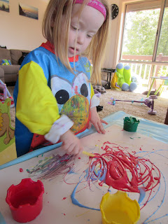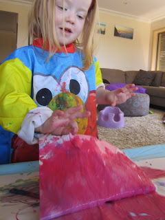 Couldn't resist painting her hand. "It feels so sticky! Not like real paint"