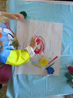 Swirling the coloured glue together. "I'm making purple!"