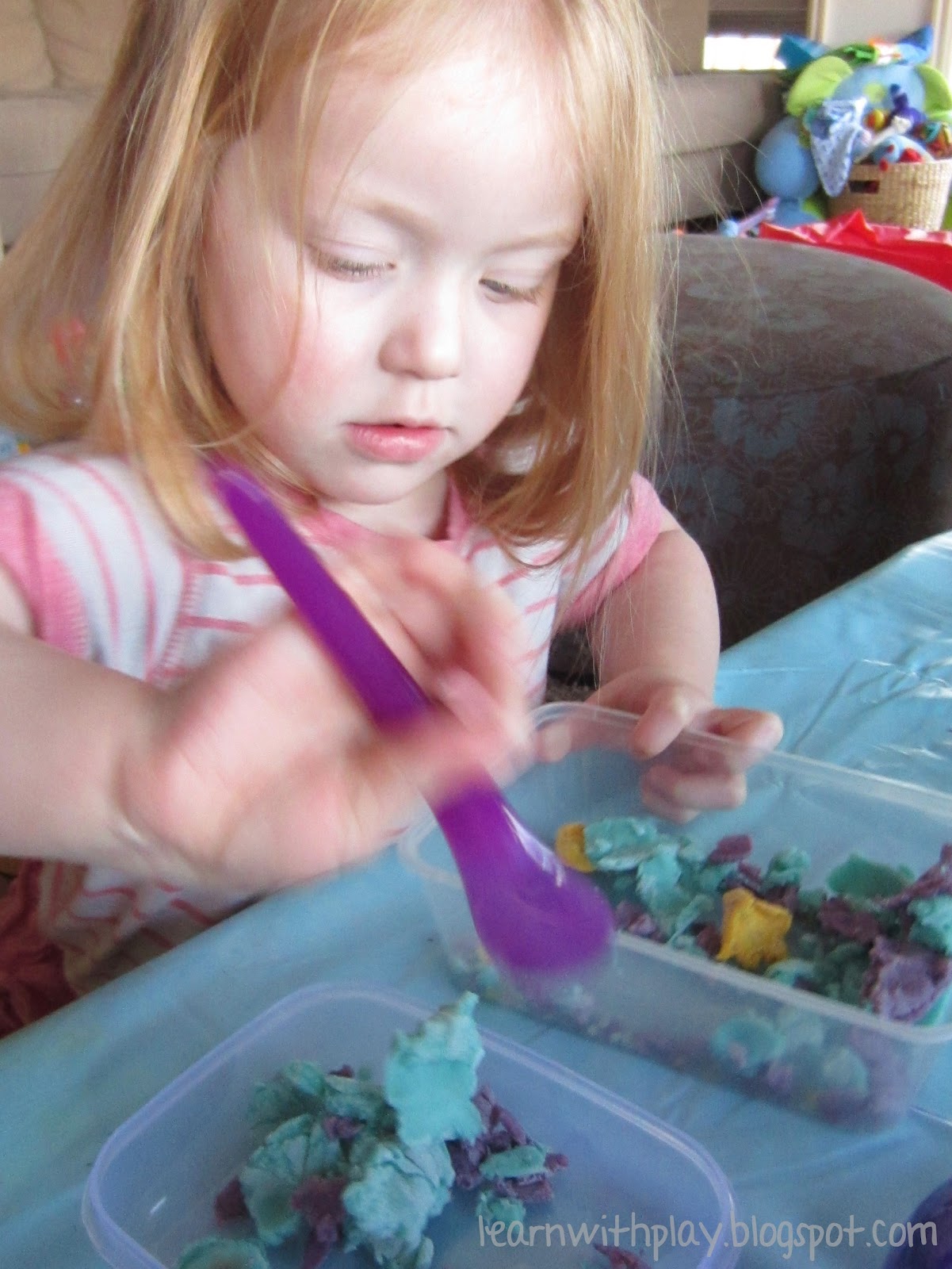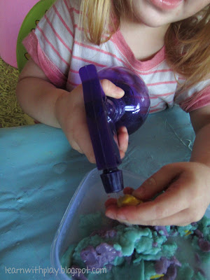 - Mix it up by providing the same materials but also with a small tub of plain flour. See what happens!