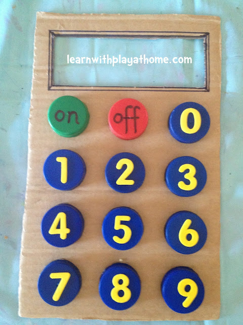 - Simplify this activity by just giving the play calculator for them to explore and use in imaginative play. Try some basic instructions like, "can you find the 4?"