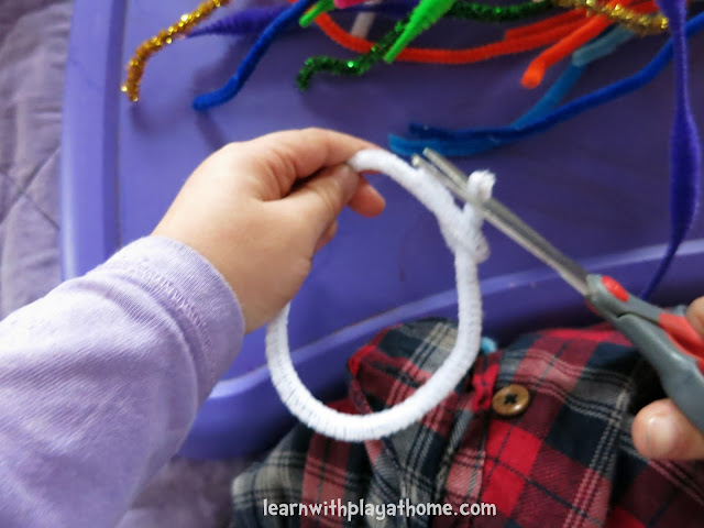 Snipping Pipe Cleaners is tricky. I provided the scissors in case she needed them but she didn't very often.