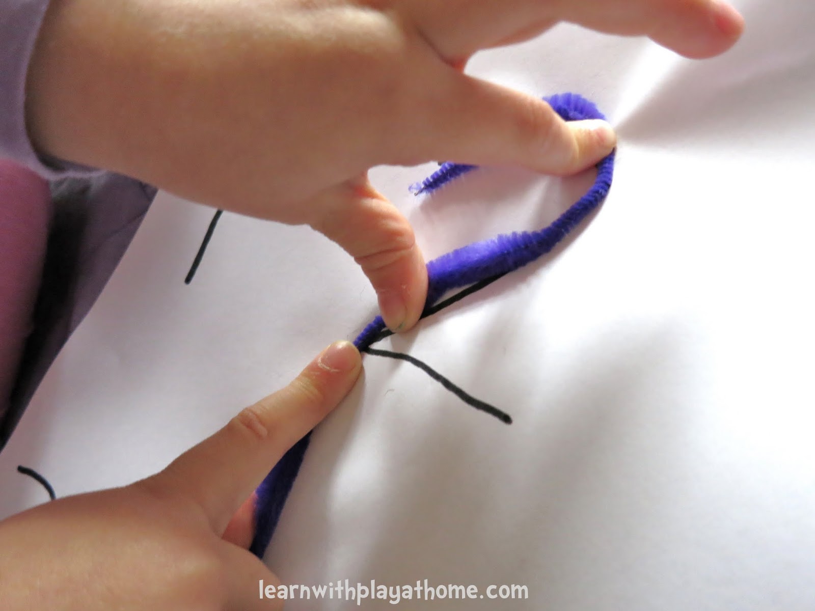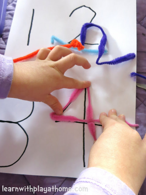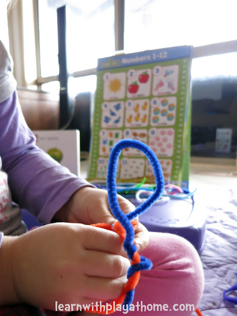 I encouraged her to start the pipe cleaners at the same point that you would when writing the numbers.
